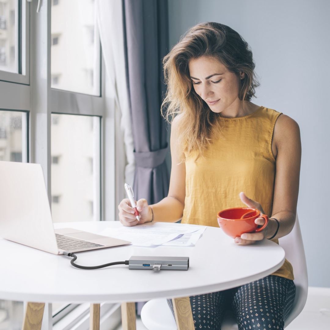 USB-C-multiport-adapter, 4-poorts, 2x USB-A, USB-C, LAN/ethernet