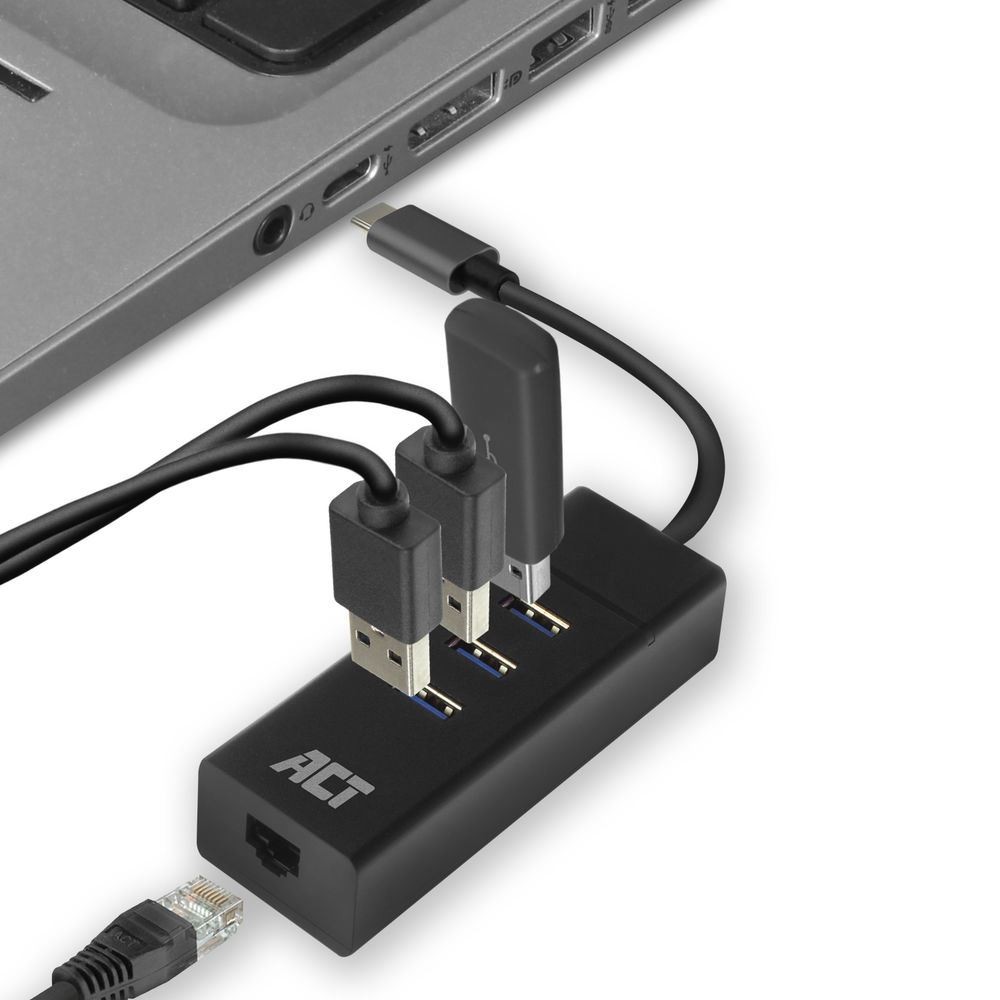 Heeft jouw laptop te weinig USB-poorten? Is de netwerkpoort van de laptop defect of heeft de laptop geen fysieke ethernetpoort? De AC6400 3-Poorts USB 3.2 Gen1 (USB 3.0) Hub met Gigabit netwerkpoort biedt de oplossing.De AC6400 voegt drie USB-poorten toe en daarnaast nog een Gigabit netwerkpoort. Je hebt altijd genoeg USB-poorten om randapparatuur, een USB-stick of een externe SDD aan te sluiten. De Gigabit netwerkpoort zorgt ervoor dat de laptop op een bekabeld netwerk kan worden aangesloten.De AC6400 3-Poorts USB 3.2 Gen1 (USB 3.0) Hub met Gigabit netwerkpoort is overeenkomstig met USB 3.1, USB 3.0, USB 2.0 en 10/100Mbps specificaties.